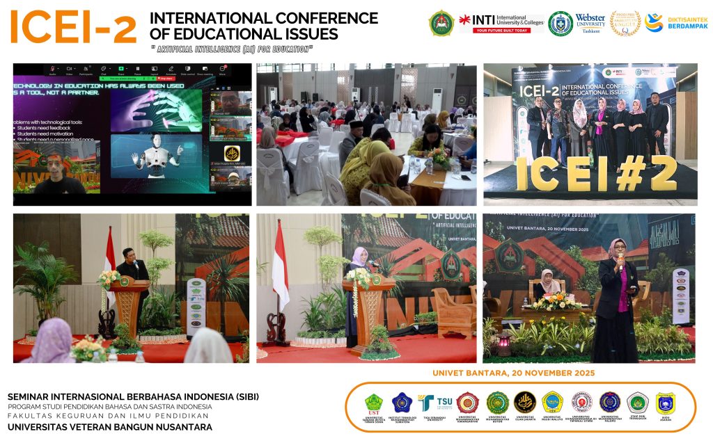 Program Studi Pendidikan Bahasa dan Sastra Indonesia (PBSI) FKIP Universitas Veteran Bangun Nusantara (Univet Bantara) kembali menunjukkan kiprahnya dalam pengembangan keilmuan di era digital melalui penyelenggaraan Seminar Internasional Berbahasa Indonesia (SIBI) ICEI-2 pada 20 November 2025. Mengusung tema “Artificial Intelligence (AI) for Education”, kegiatan ini digelar di Auditorium Univet Bantara dan menghadirkan narasumber internasional dari Taiwan, Malaysia, Uzbekistan, serta Indonesia. Kehadiran mereka menegaskan posisi Univet Bantara sebagai pusat akademik yang aktif menjawab tantangan era kecerdasan buatan.