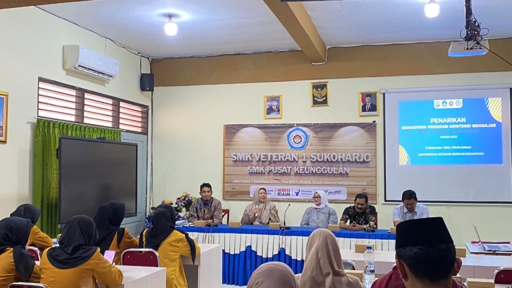 Pada Kamis, 11 Desember 2025, Fakultas Keguruan dan Ilmu Pendidikan (FKIP) UNIVET BANTARA secara resmi melaksanakan kegiatan penarikan mahasiswa Program Asistensi Mengajar (PAM) di SMK Veteran 1 Sukoharjo. Kegiatan ini menjadi penutup rangkaian praktik lapangan yang telah dijalani selama beberapa minggu oleh mahasiswa Program Studi Pendidikan Bahasa dan Sastra Indonesia (PBSI).